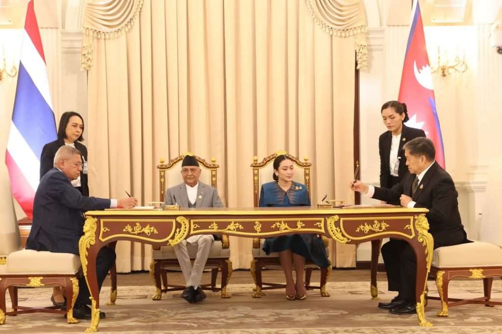 प्रधानमन्त्री केपी शर्मा ओली र थाइल्यान्डका प्रधानमन्त्री पे थोङ् थान् शिनावात्राबीच दुईपक्षीय भेटवार्तापछि सम्झौता तथा सहमतिपत्र आदानप्रदान भएको छ ।