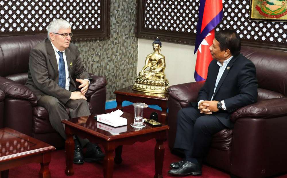 काठमाडौँ । उपप्रधानमन्त्री तथा शहरी विकास मन्त्री प्रकाशमान सिंहसँग नेपालका लागि इजरायलका राजदूत श्मुलिक एरी बासले शिष्टाचार भेट गरेका छन् । सिंहदरबारस्थित शहरी विकास मन्त्रालयमा भएको भेटवार्तामा आपसी हित र सहकार्यका विषयमा छलफल भएको थियो । भेटमा नेपाल र इजरायलबीचको द्विपक्षीय सम्बन्ध, कृषि तथा श्रम क्षेत्रमा सहकार्यका विषयमा छलफल भएको उपप्रधानमन्त्री सिंहको सचिवालयले जानकारी दिएको छ ।