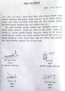 नेपाल कम्युनिष्ट पार्टी एकीकृत समाजवादी (नेकपा एस)का उपाध्यक्ष एवं प्रचार प्रसार विभागका प्रमुख प्रताप कुमार गौतम, कान्तिकारी कम्युनिष्ट पार्टी नेपालका सेक्रेटरी विनय राना नेकपाका सेक्रेटरी टिकाराम “सी” र नेकपाका सेक्रेटरी केशर सिंह लावडको हस्ताक्षर रहेको संयुक्त विज्ञप्तिमा जिल्लाका क्रियाशिल क्रान्तिकारी कम्युनिष्ट पार्टीहरुको सो सहमति प्रति गम्भिर ध्यानाकर्षण भएको जनाइएको छ ।