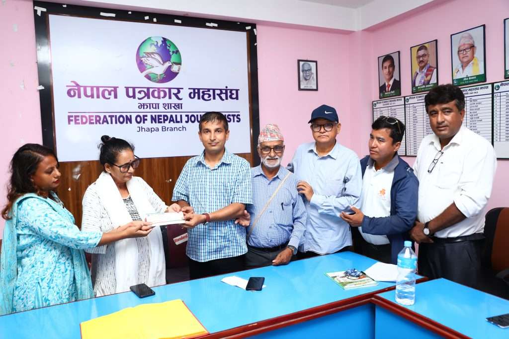 झापा। भाद्र २८। नेपाल पत्रकार महासंघ झापाले स्वर्गीय पत्रकार नेत्र पाठकको परिवारलाई एक लाख रुपैयाँ सहयोग प्रदान गरेको छ । बिर्तामोडस्थित महासंघको कार्यालयमा आज शुक्रबार आयोजित संक्षिप्त कार्यक्रमका बीच महासंघ झापाका अध्यक्ष एकराज गिरीले स्व. पाठककी श्रीमती सीता र बुहारी हिमालाई उक्त रकमको चेक हस्तान्तरण गरेका हुन् । महासंघ झापाले स्थापना गरेको पत्रकार सहारा उपचार कोषको ब्याजबाट उक्त रकम सहयोग प्रदान गरिएको हो ।